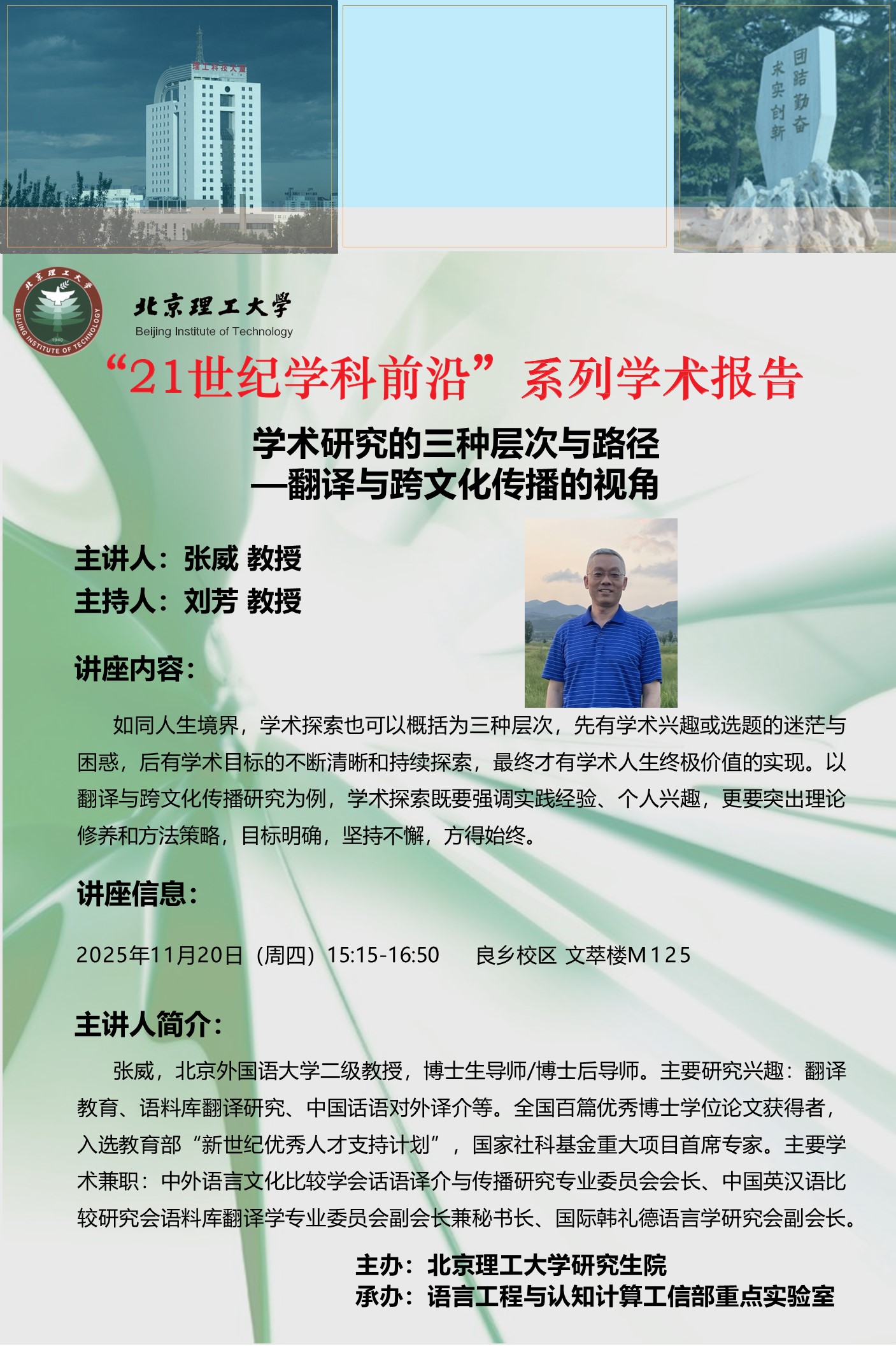 北京外国语大学教授张威为北京理工大学外国语学院师生作学术讲座