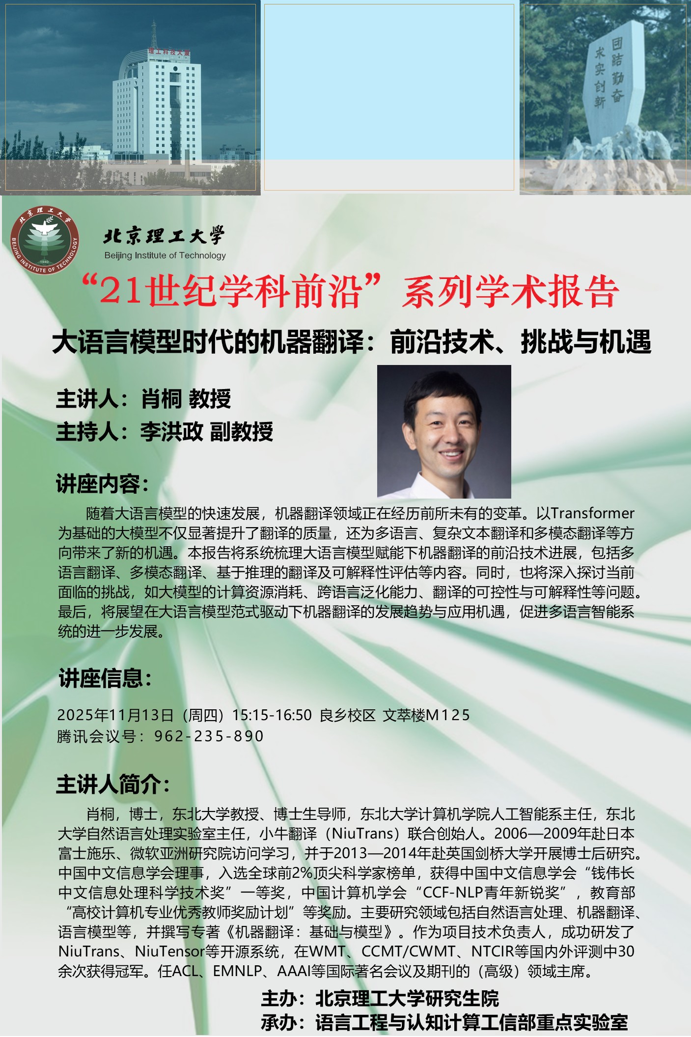 “21世纪学科前沿”系列学术报告:大语言模型时代的机器翻译:前沿技术、挑战与机遇